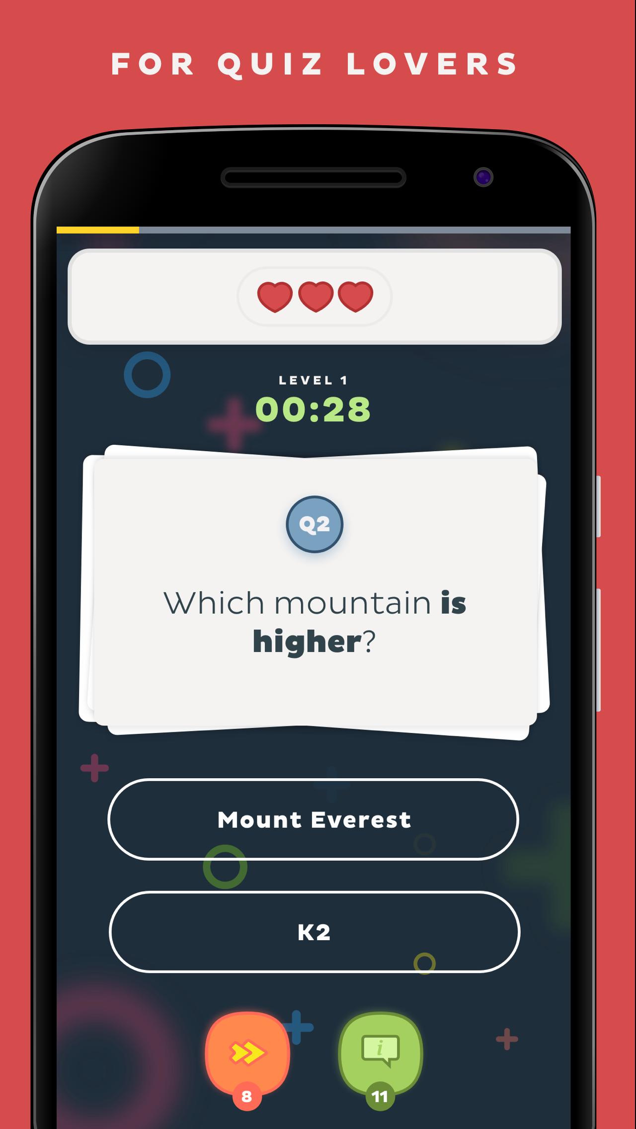 Great variety of trivia: Geography, History, Science, Pop Culture,
