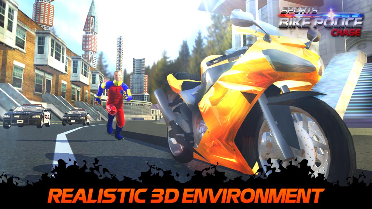 Get behind your sports motorbike wheels for an extreme racer gaming experience. Over take other rider and traffic to get away from police chase. Take up the challenge of endless racing as a motorbike rider. Dodge the cops and get away from the police chase. Overtake the traffic vehicles & ride your sports bike on the endless highway roads to complete the missions. Moto bike racing has never been this much fun. Drift your racer sports bike with fast speed and drive away from the police or they will arrest you. Drive your sports car to race high speed on the roads to avoid getting caught. Otherwise you will end up in prison. Sports Bike Race Police Chase is an open world extreme motobike game. Drive super fast motocross motorbikes and escape with the stolen items. Sports Bike Race Police Chase is an action packed 3D racing simulator game for big boys and girls. Get a taste of realistic criminal life; avoid emergency arrest as a most wanted criminal thug in the city. Join racer group and show your racer driver skills and get away from cops, sergeant or detective. Drive sports bike with fast speed engine and drift. Thief & criminals are on the loose from jail, outlaw gang wars and street crimes are on its peak. It’s time to be a super criminal to become a part of cops chase and escape gangster, crooks and crazy criminals from the crime scene. This 3D game will take you on next level high speed racing simulation game play. Enjoy this hot pursuit action pack game to give you adrenaline rush with thrill and speed.