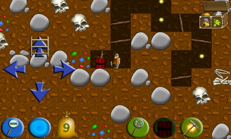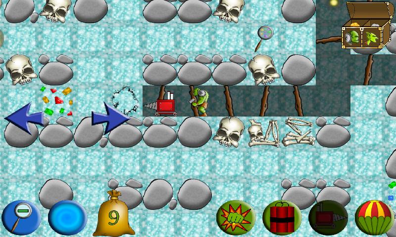 • Use dynamite, digging machines, gem locators, potions, parachutes, speed boosters and much more!