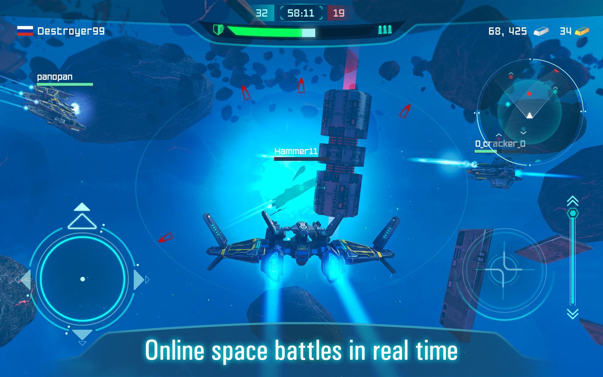 Join a global online space war, face with everyone or join with your friends and create a team!