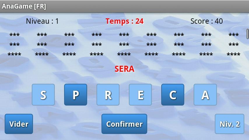 Realize a maximum of FRENCH anagrams from 3 to 6 letters before the end of granted time.