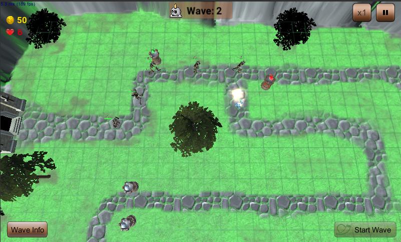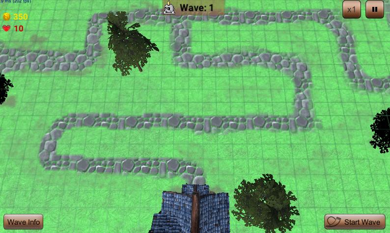 After each destroyed wave the next batch of enemies will become stronger. When the player fails to destroy the enemy 10 times before it reaches the base it will be taken over by the enemy and the game is lost. The player will have to start over again with a new base and 0-gold.