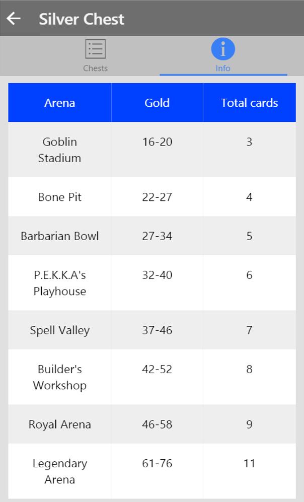 You can track your upcoming chests using the chest tracker. You can find information regarding chests in every arena.