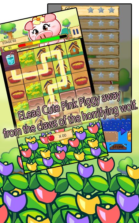 Lead Cute Pink Piggy away from the claws of the horrifying wolf.