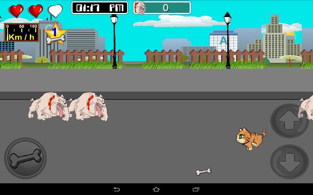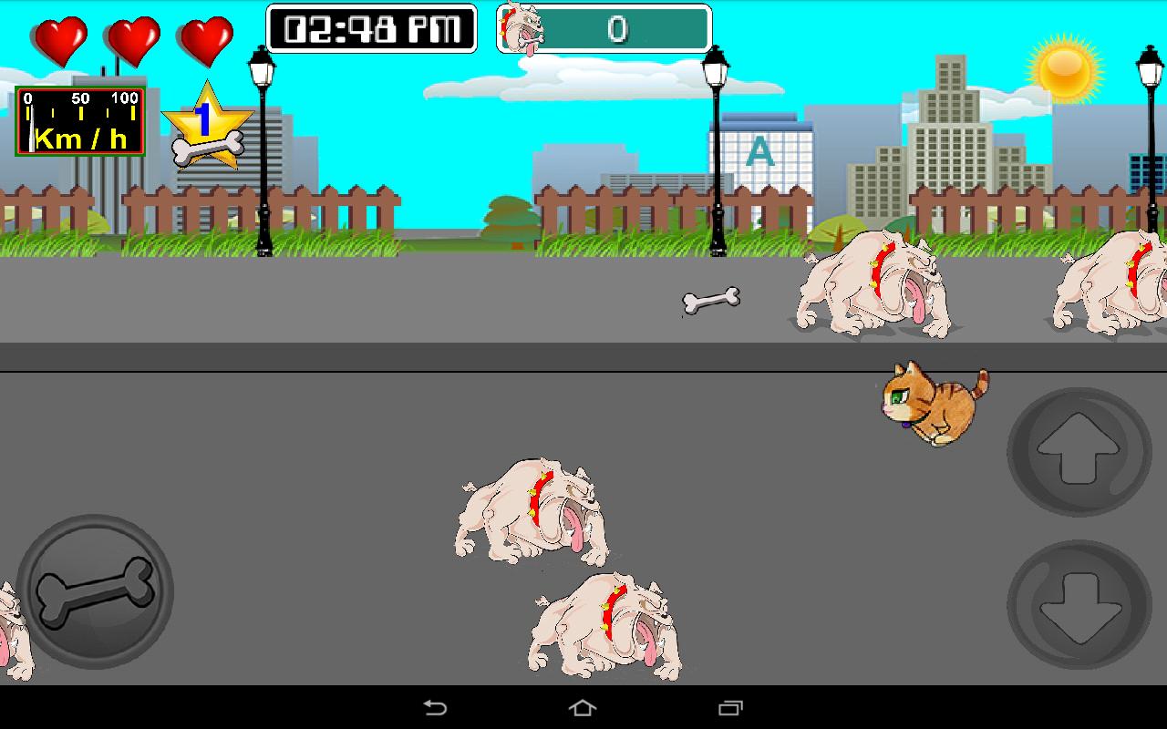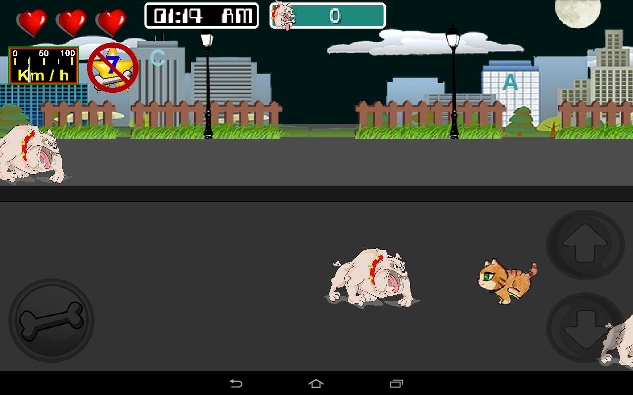 At night you can not use the bones so you should avoid the fierce dogs , however , you can hunt the rats to regain the lost lives , while the cat increases its speed at every turn.