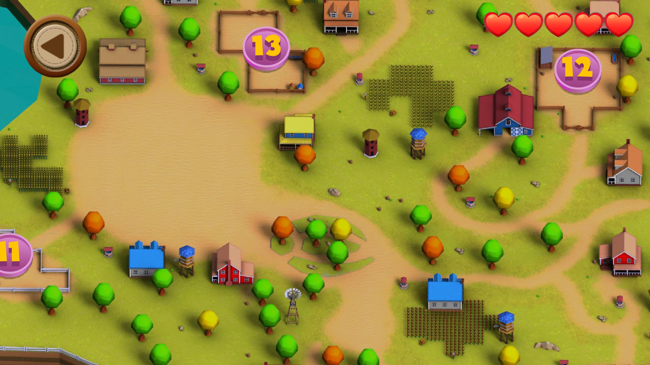 The game features two different modes: the Pen Mode and Farm Mode. In Farm Mode, the player can freely explore and roam the Haywire Valley landscape to collect coins which are going to help in the Pen Mode. Coins are used for upgrading weapons and buying ammo.