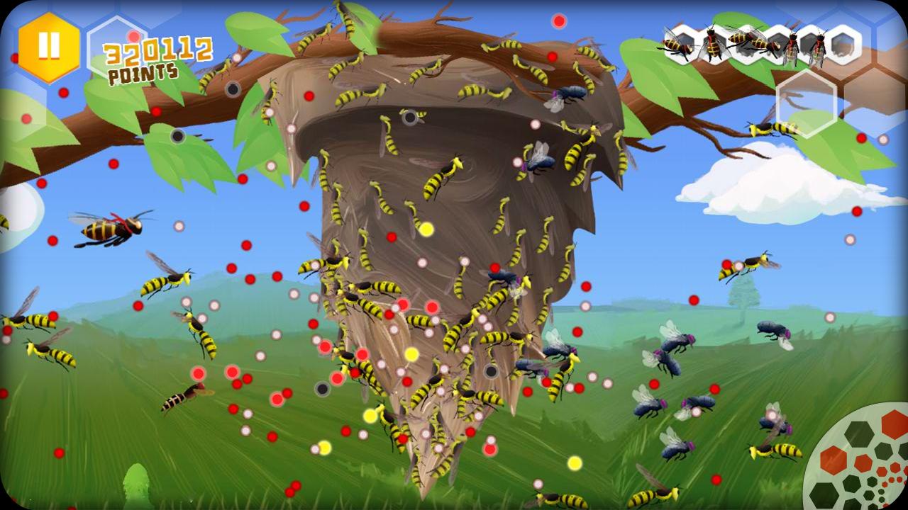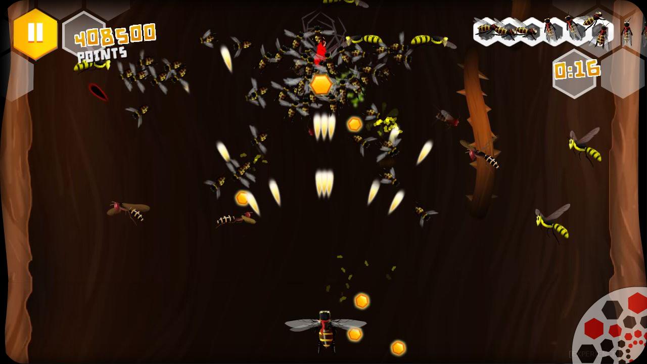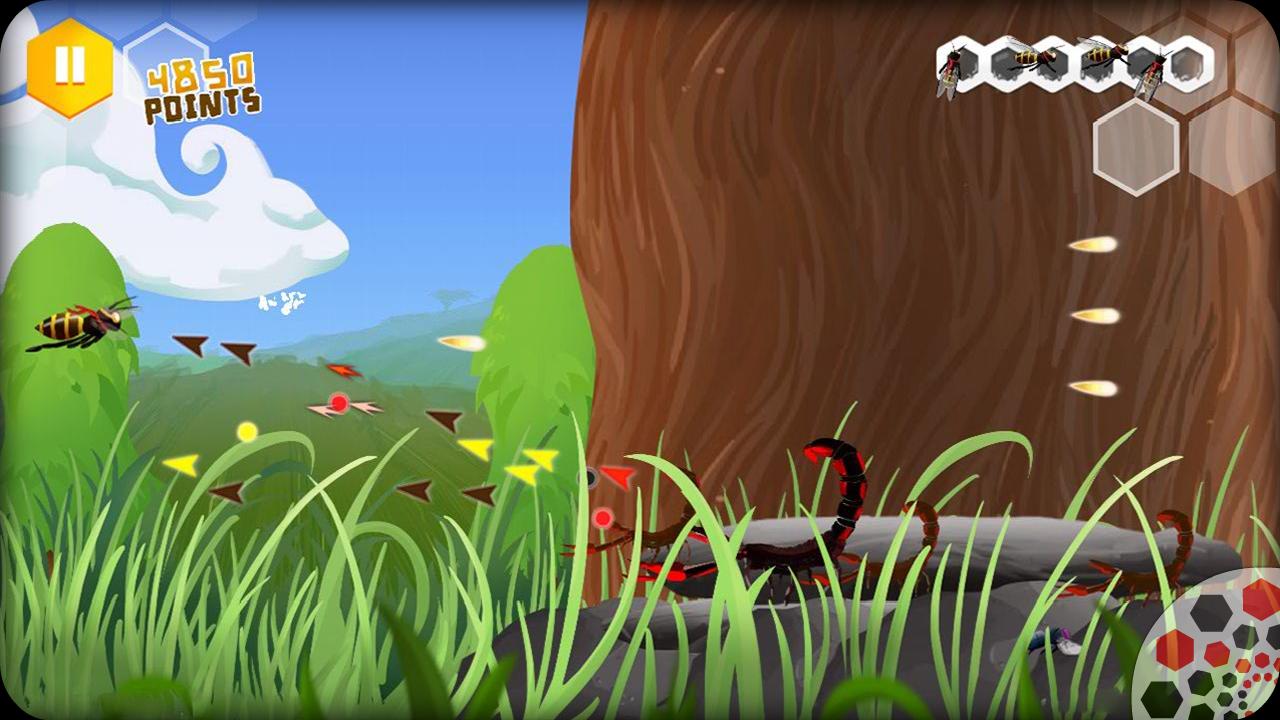 The games contains all sort of nasty bugs like wasps, hornets, spiders, flies, cockroaches, fleas, mosquitoes, scorpions, praying mantis... along with some natural bee enemies like bee-eaters.