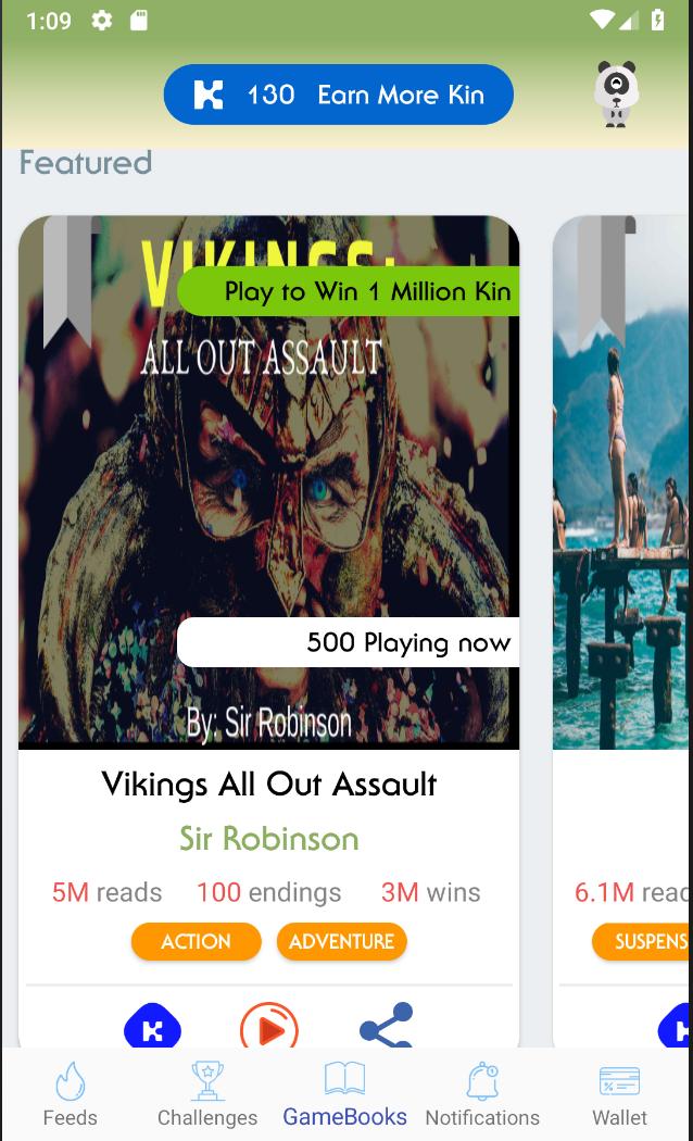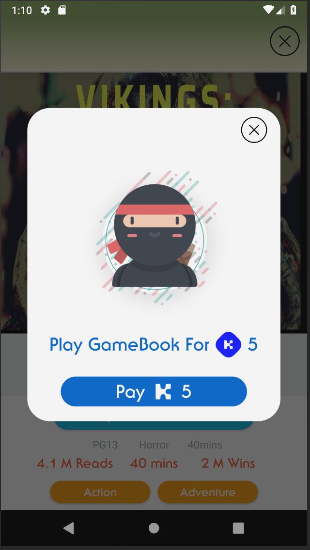 Klicktion is an Interactive Fiction / Choose Your Own Adventure story distribution platform powered by Kin Cryptocurrency. Users can choose from a variety of gamebooks and earn by completing various tasks such as winning the gamebook and spend to unlock power-ups and avatars. This is a very early beta.