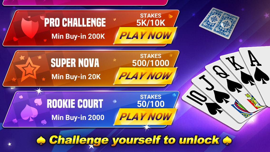 Poker League: Come to challenge yourself and poker lovers all around the world. Let’s start with Rookie Court to unlock more and reach the peak!