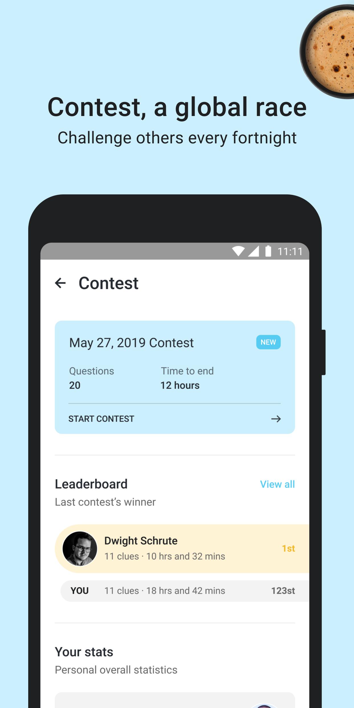 Cryptic Cup is a unique take on the cryptic crosswords. Everybody loves solving the daily crossword in the morning. But imagine if you could find out how good you were at it. Every fortnight, Cryptic Cup pits you against cryptic crossword aficionados from across the world in our Cryptic Cup contests, giving you the opportunity to prove your mettle and come out on top of the leaderboard.