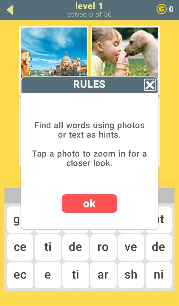 One word per photo. 30 words per level. 570 Words in the game. Can you find all of them? Sometimes you have to think beyond the obvious. Good luck!