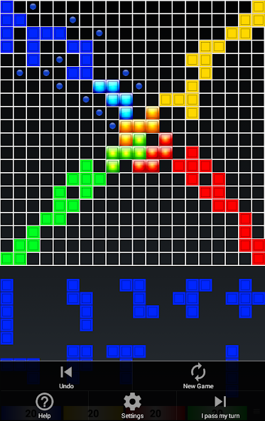 - The first piece played of each color is placed in one of the board's four corners. Each new piece played must be placed so that it touches at least one piece of the same color, with only corner-to-corner contact allowed edges cannot touch. However, edge-to-edge contact is allowed when two pieces of different color are involved.