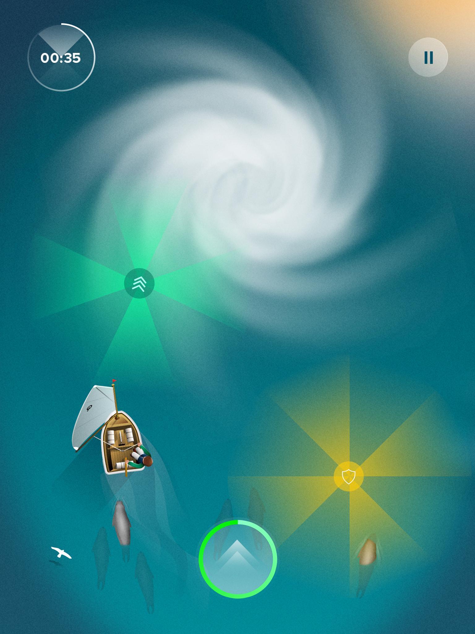 As a sailor you are completely dependent on the wind. That is why you are the wind in this game yourself. By blowing in the microphone of your device, you blow wind in your sail and move forward. So you play the game by keeping your device flat in front of your mouth.