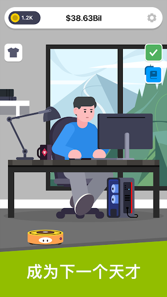 In Cyber Dude you start as a QA tester in an ordinary storage room with an old computer. By tapping the screen, you start earning money, gradually increasing your wealth. Spend your earnings on things like buying a new home, upgrading your computer equipment, or learning skills to earn even more with each tap. Become smarter, invest in new legendary items, or learn and start creating apps and games that will help you earn even when you're not playing! Start your adventure now and find yourself on another planet!