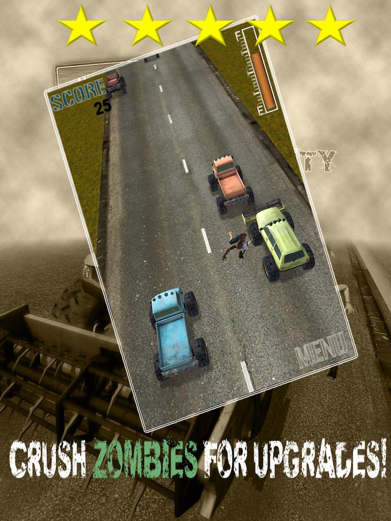 Drive your car down a desert highway as zombies leap at your vehicle and attempt to flip you over! How long can you survive the undead attack? You will have a few weapons at your disposal. Obstacles in the road will help you swipe zombies off. But, be careful - crash directly into obstacles and you'll be eaten. You also have a number of guns including pistols, machine guns, a minigun, and a sniper rifles. Use your firearms to slaughter zombies as you shoot from the driver's seat. Keep an eye on your gas indicator and don't run out of fuel. Gather gas tanks on the road as you're driving and increase your chances of survival!. Your only hope of survival will be determined by your ability to drive your monster truck as you dodge and destroy each enemy in your path. Racing your way to freedom and shoot killer zombies,.Earn score by crushing as many Zombies and Smashables as quickly as you can to unlock new levels! Is your vehicle strong enough for the challenges as your inevitable doom closes in around you? This game delivers cars and weapons never before seen on mobile!