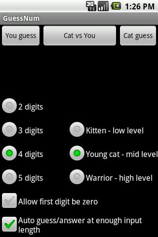 3 playing modes: Cat guess You, You guess Cat, Cat vs You.