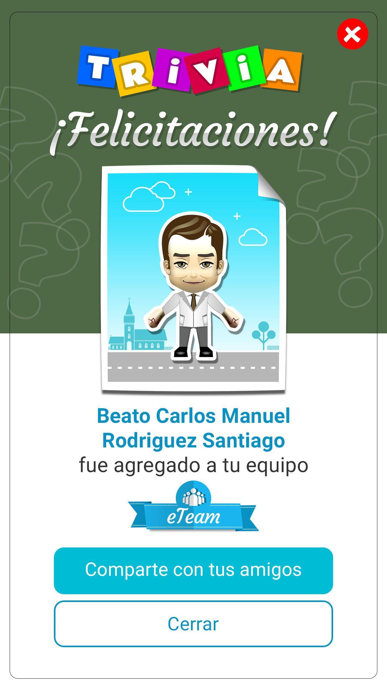 It allows players to form their eTeam (Evangelization Team), made up of friends, biblical characters, saints, blesseds and marian advocations.