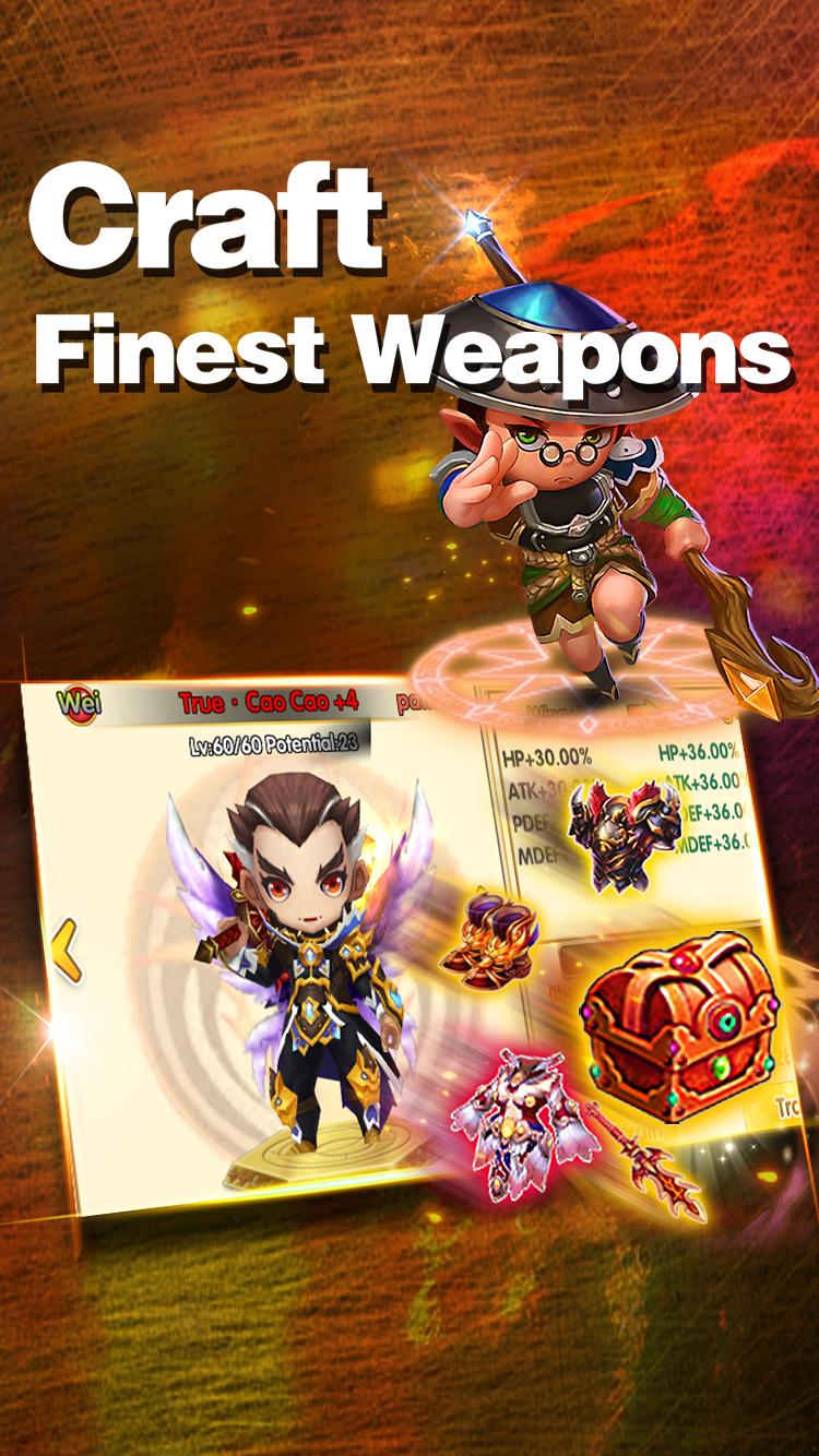 Enjoy the real Three Kingdoms history with funny storyline. Cute conversion, classic hero, ultimate 3D graphics and kinds of PVE/GVE function: Main, Elite, Epic stage, land patrol, hero celebrity, Bandit War, Team Suppress, Legion Conquest...etc. Waiting for you to join us!