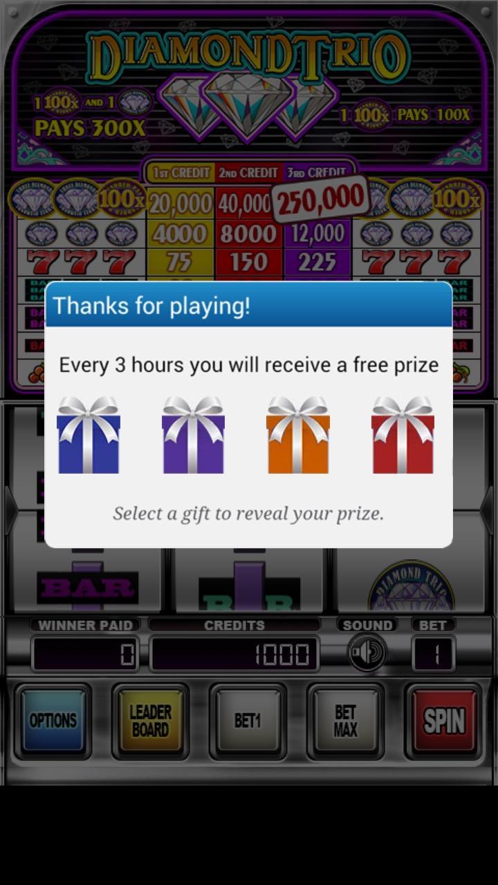 Diamond Triple One Hundred Pay Slot Machine Free is easy to play and offers large jackpots up to $250,000 as well as bonus games. Whether you like penny slots or multi pay-line slot machines this game is for you. While Diamond Trio 100x pay slot machine has loose slots it's not easy to get to the top of the leaderboard. Compete against all the app users for the top spot on the leaderboard daily and all time.
