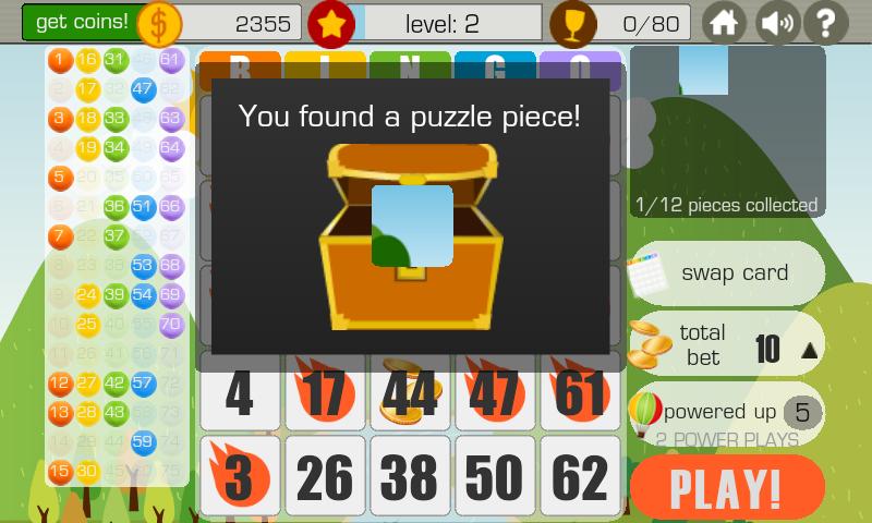 Gain levels, unlock pictures and use powerups to win more bingos! Collect additional coins every four hours and complete achievements to get even more. Hit the jackpot by getting multiple bingos on one card and win huge payouts!