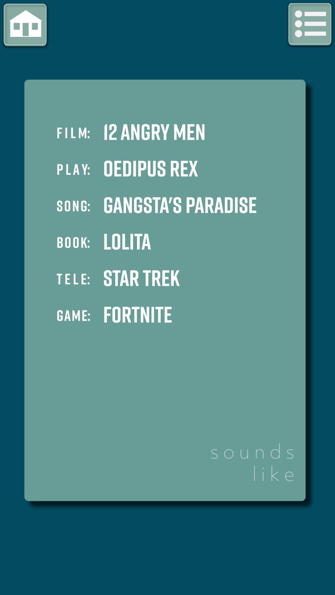 Over 100 cards each with a movie, TV show, song, video game, book, and play! Keep track of teams with built-in score keeper!