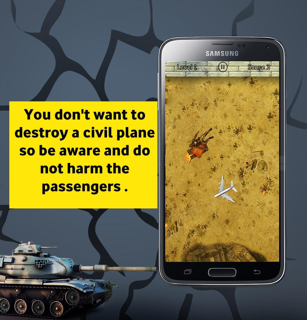 Among all these soldiers and military helicopters there is a civil airplane with innocent passengers so be careful not to crush them or else you will lose.