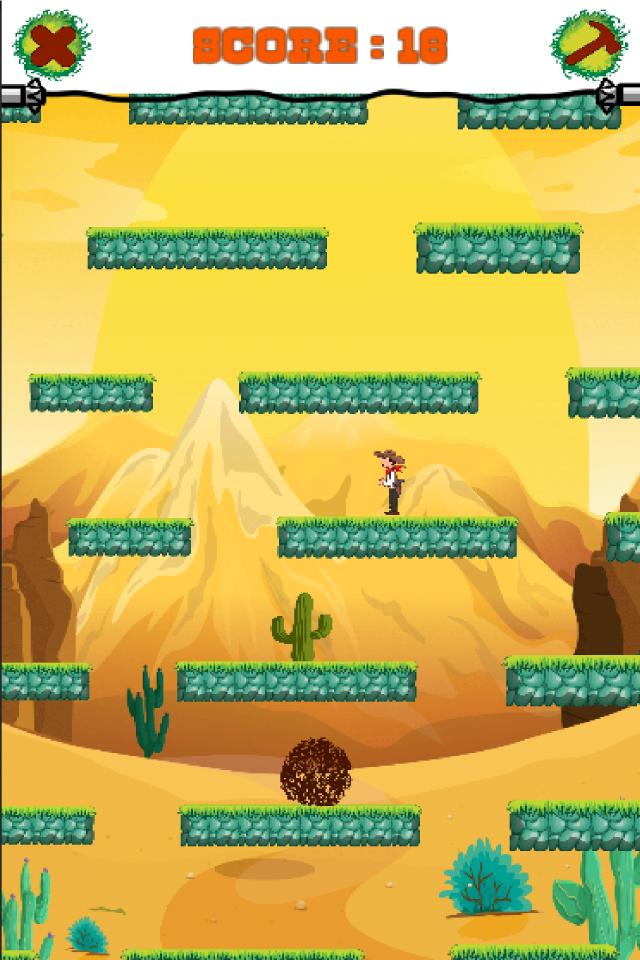 Cowboy Smith is trying to get down the hill without falling or stumbling upon the tumbleweeds and the cactuses on his way. There's also a white smoke coming down on him so be fast and careful. Enjoy playing this free game!