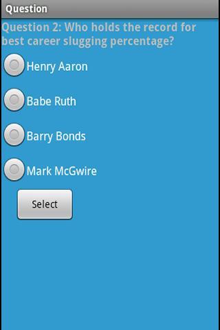 Test your knowledge of MLB baseball history, statistics, and trivia. This application is in a quiz format, with options to do 10, 25, or 100 question from a database of over 400 questions, and a choice of easy or a standard level of difficulty. Questions include World Series records, career, game, and season records, including hitting, pitching, fielding, and managing. Also some questions of trivia, such as player nicknames.