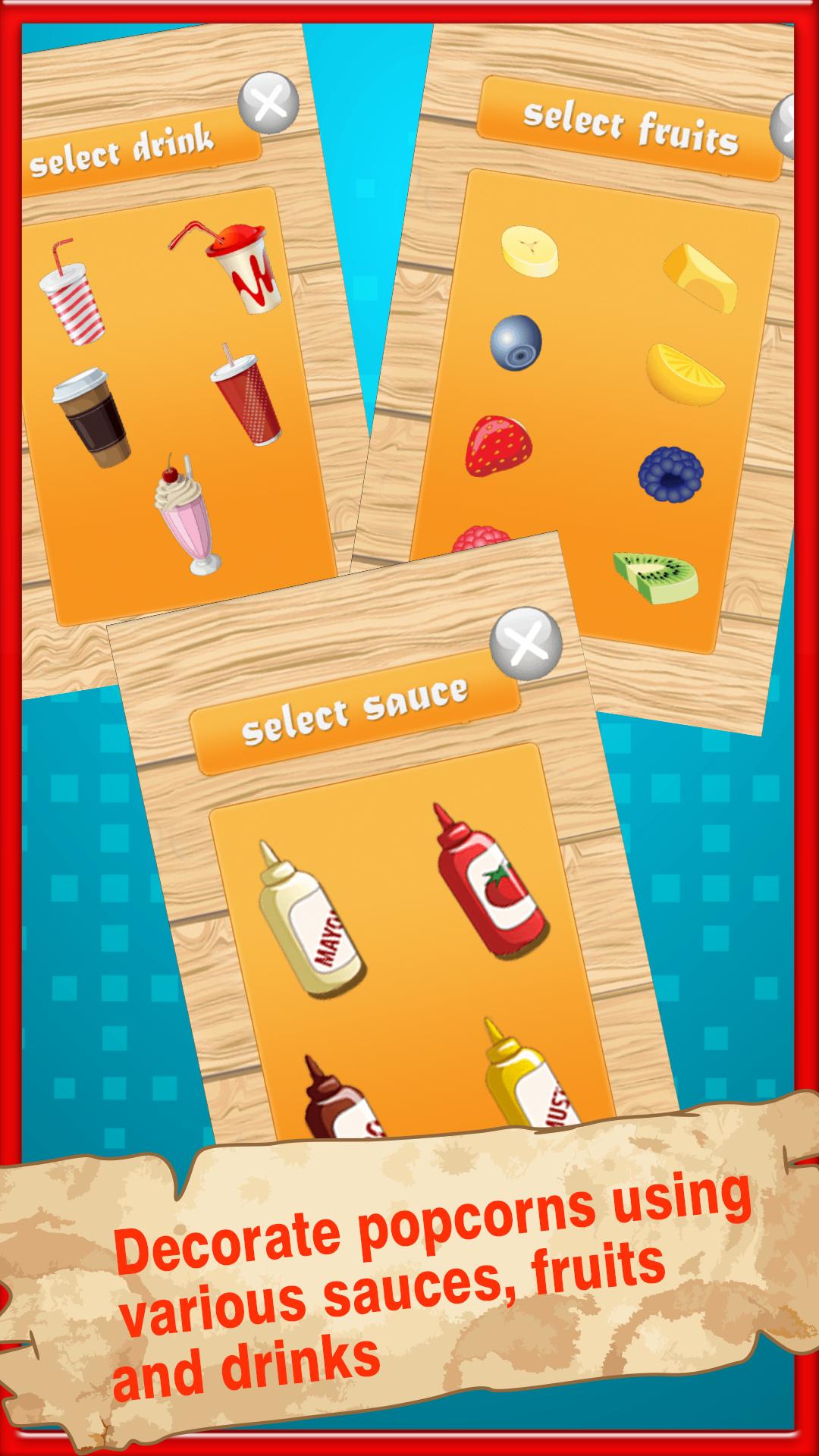 Popcorn Maker – the latest cooking game of its kind, allows you to kill your hunger, whenever you want, wherever you want. Your new Popcorn Maker won’t ever let the teeny tiny wish of your grumbling belly down- you just need to pop ‘em, salt ‘em, butter ‘em or use some caramel topping; toss up your popped kernels just the way you want. Be careful not to overcook, remember- burnt corns are the worst corns! Now give your taste buds a treat and hurry up! You’ve some kernels to pop! Happy popping!