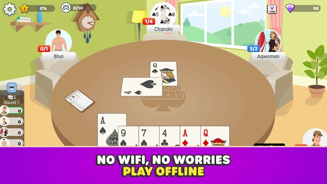 Previously known as Callbreak Legend and Call Break Premier League (CPL), this game is now bigger and better! Whether you are looking for multiplayer mode to challenge players online or to play without WiFi, Callbreak by Bhoos offers something for everyone.