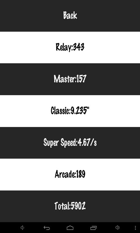 Don`t Touch White Deluxe is a game to challenge your reaction,screen is divided into four rows and four columns, each row has only one black color, your task is to press on him - a total of three game modes, Classic, Arcade, Zen. Classic mode, the player's goal is to finish by 50 black squares in the shortest possible time, each press of the screen will automatically dropV1.3