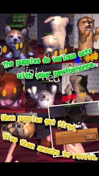 The puppies do various cute acts with your performance.