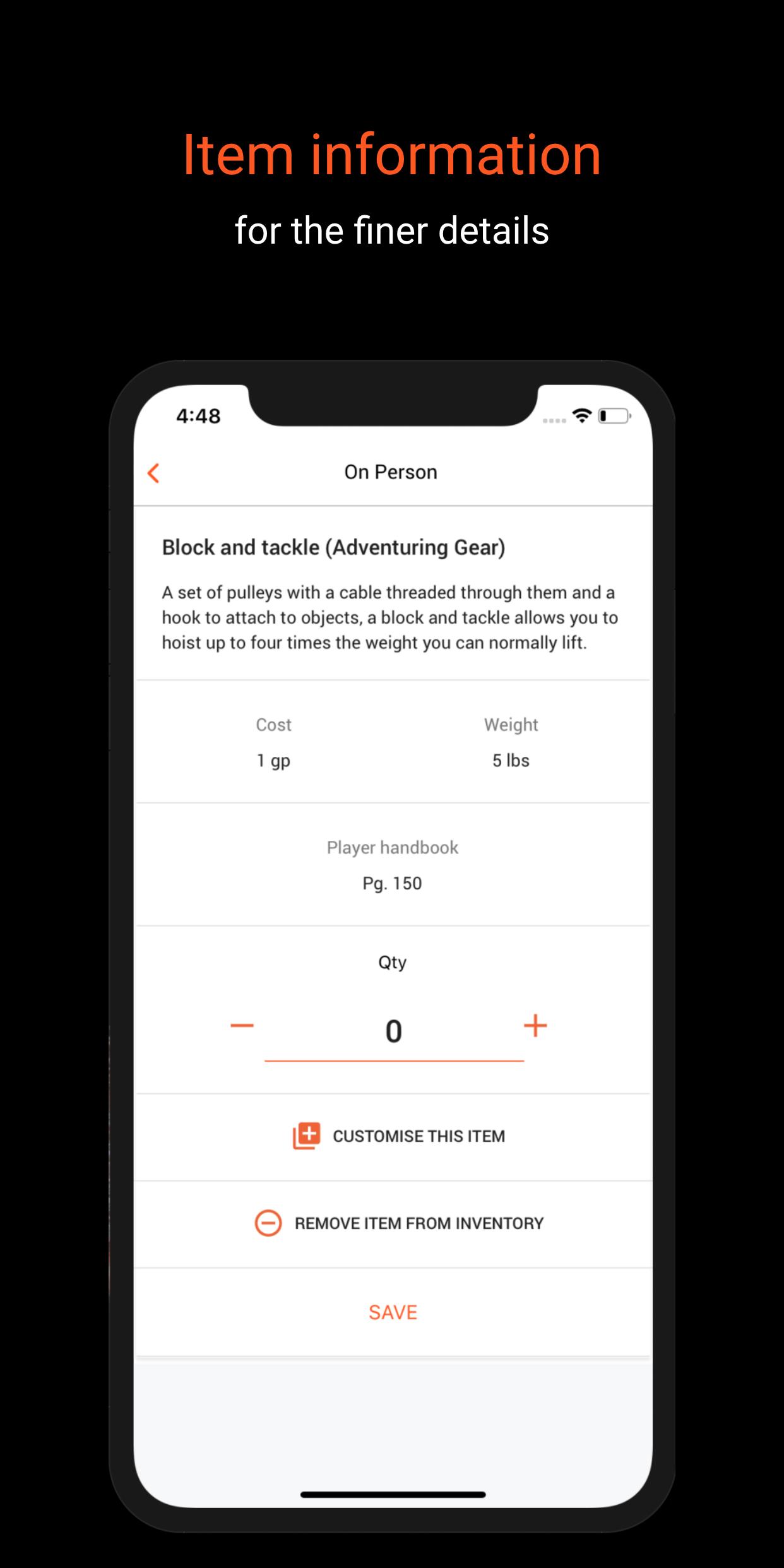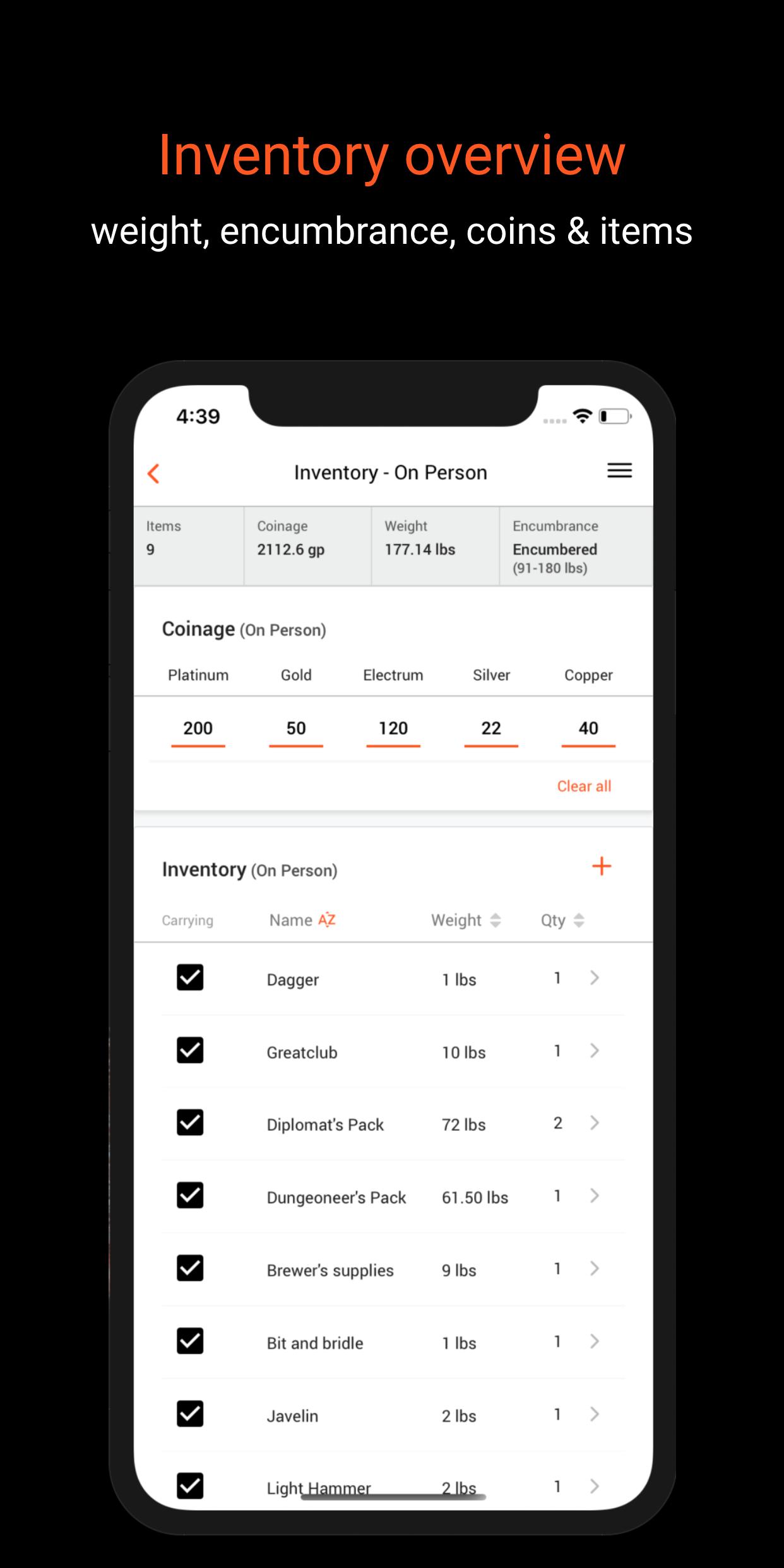 The app is the perfect supplement to your pen and paper Dungeons and Dragons (D&D) 5th Edition adventuring and will make tracking your inventory easy.