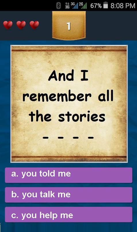 4) Choose the right answer and don't get wrong three times because can make you game over.