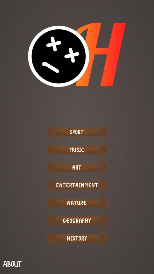 Hangman, the classic word puzzle game, with 70 categories and a word list of over 5,000 riddles.