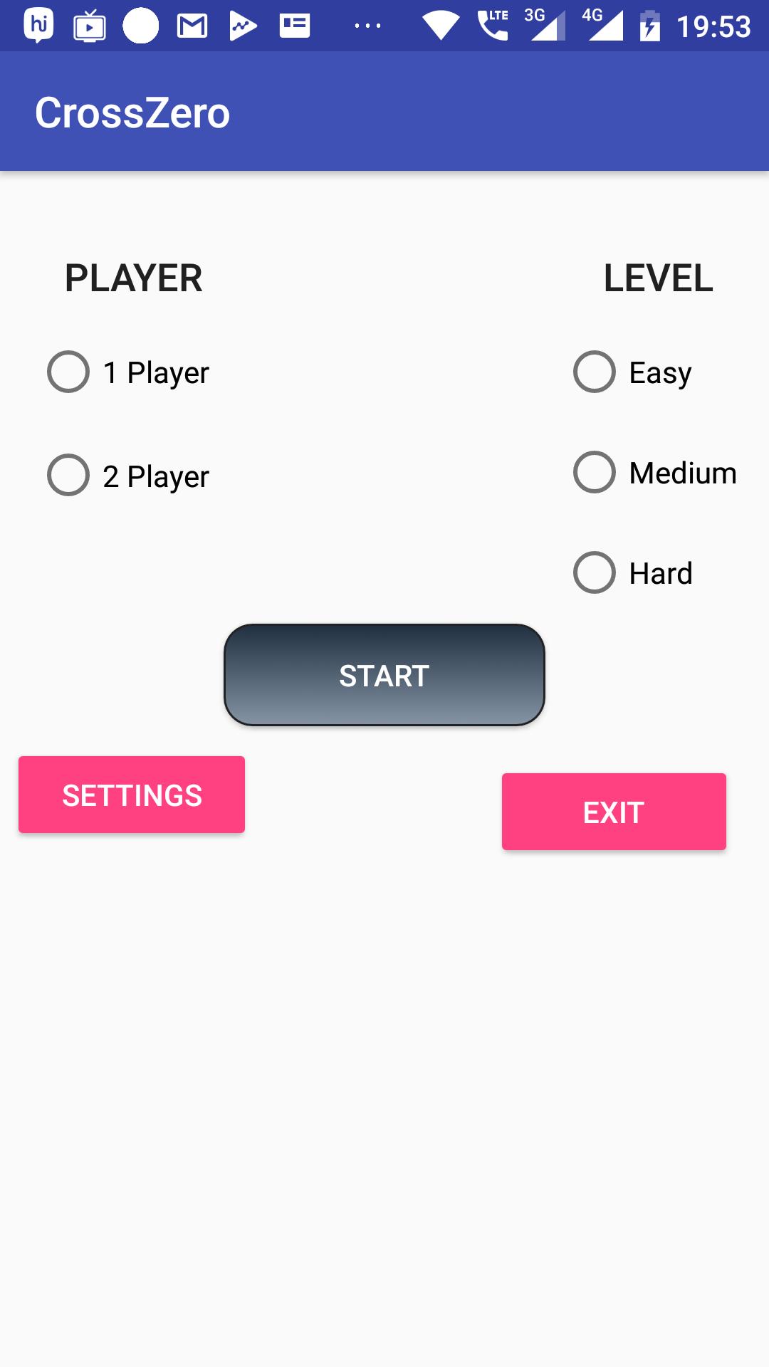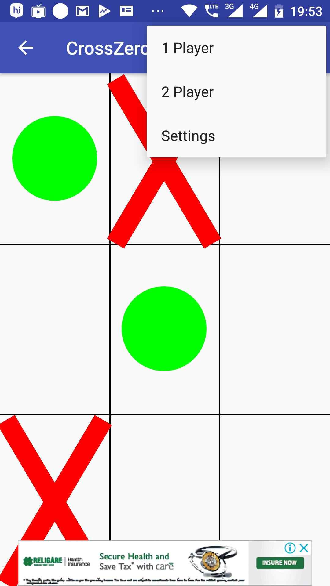 A Cross and zero app. It has done player and two player game.