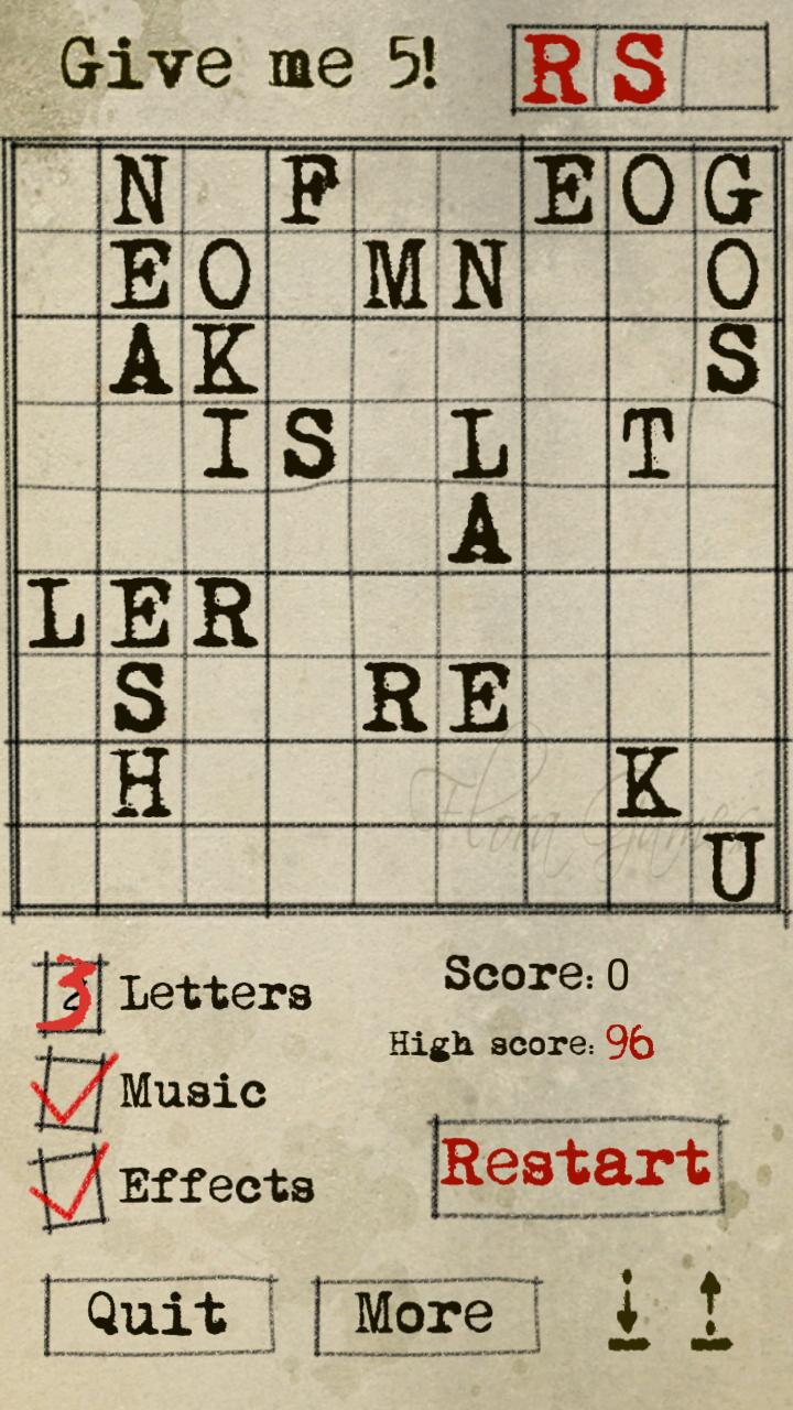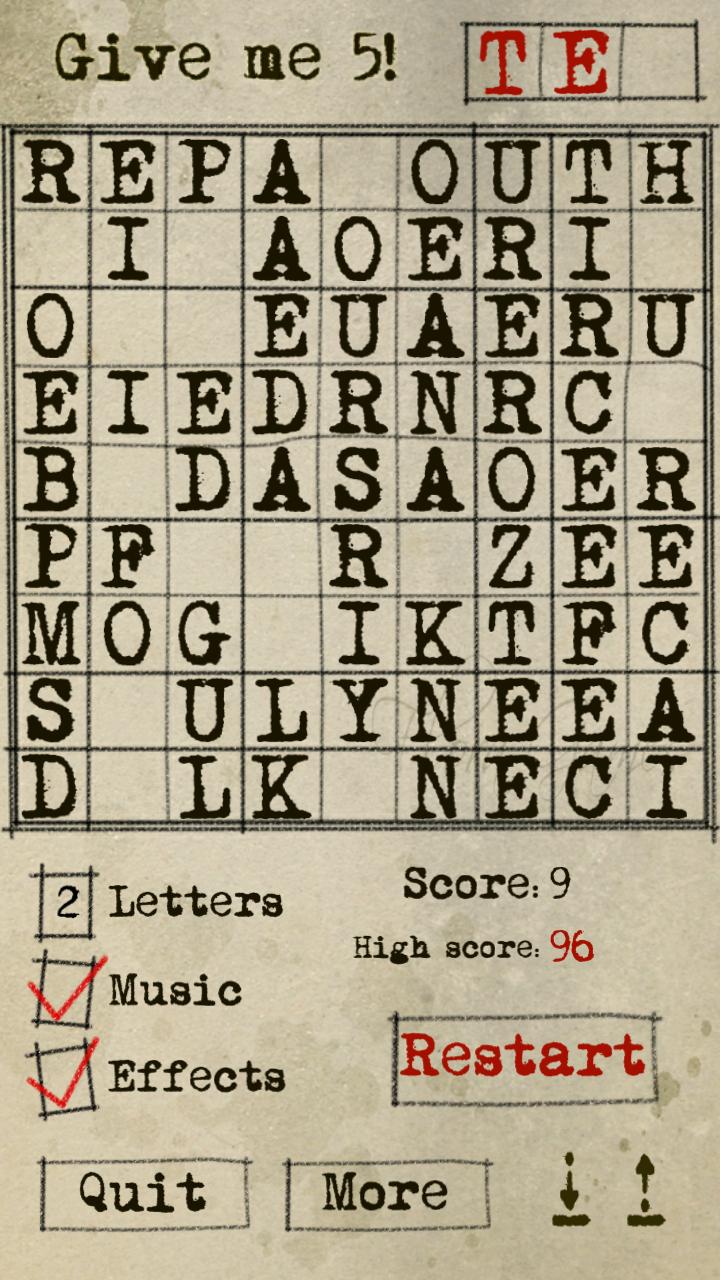 You can also put together five or more of the same letters (for example “aaaaa”). It won't result in gaining any points but it can help clear some space.