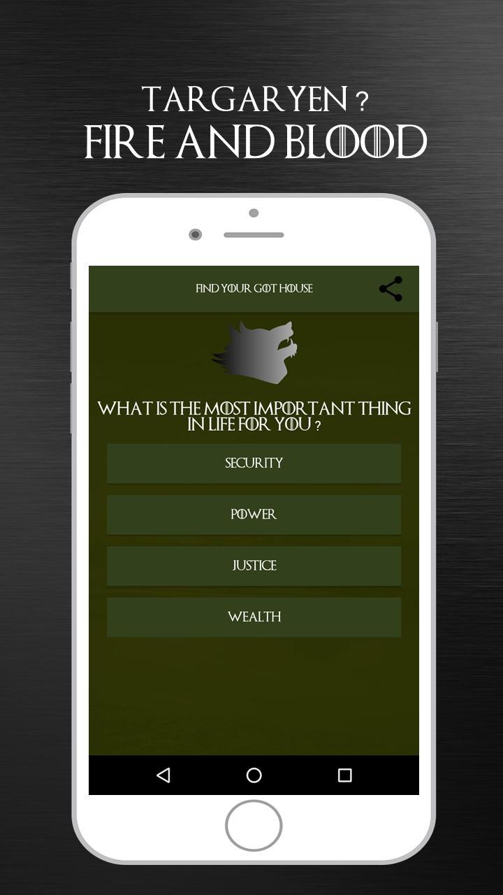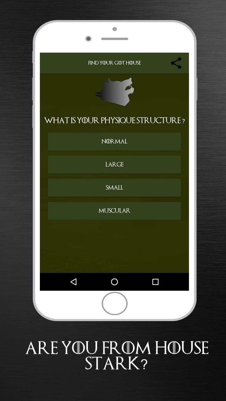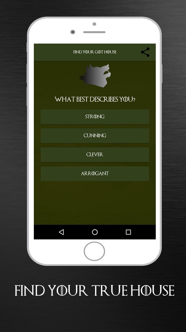 You can relate the questions asking about season, about your physique structure, about your hair and eyes color, and so you can get the result about which house you belong to. This game of thrones trivia is just for fun so we can share the funny quiz app result with our friends.