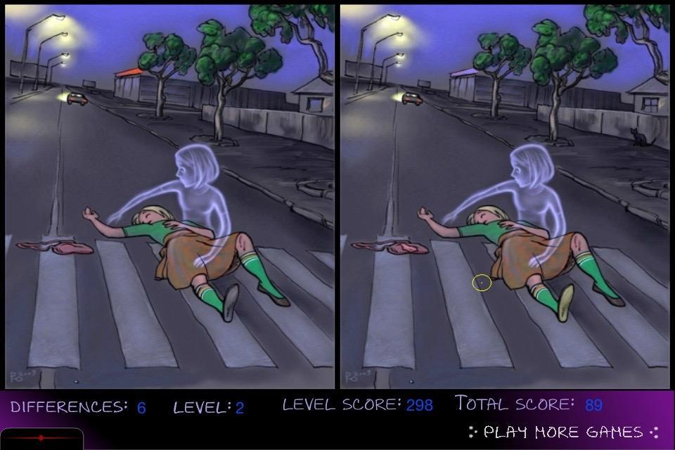 The differences between the pictures are very slight in every points of the game. You should find a difference and click the different point in any picture. You can chose ‘play with hints’ firstly.
