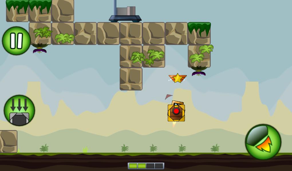 There are two different ways of controlling the Rocket Robot: accelerometer and joystick. Try both modes if you like, each mode should give different gameplay. This game is designed for mobile and tablets, the accelerometer mode is the main and suggested one but it can be changed to joystick.