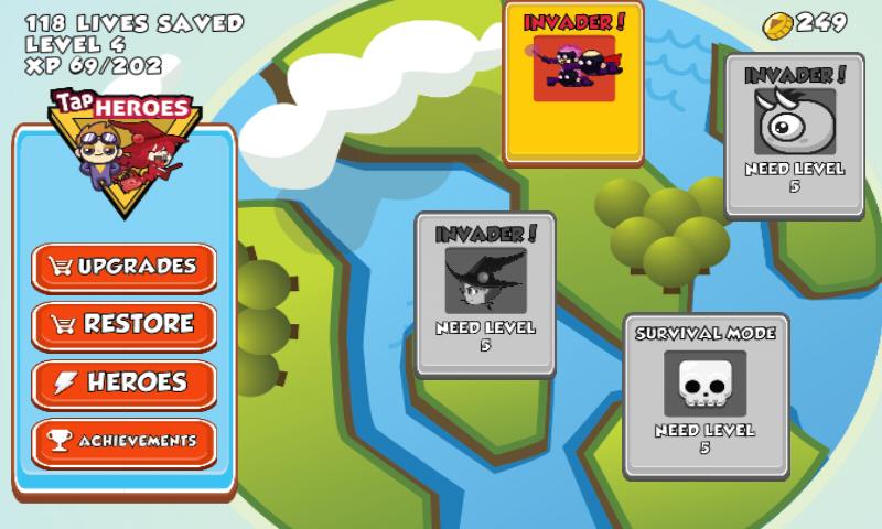 3. Villains will go stronger and you will have to go stronger too. As you go along you will Level up and be able to unlock super powers. These Super powers are upgradable with the use of gem.