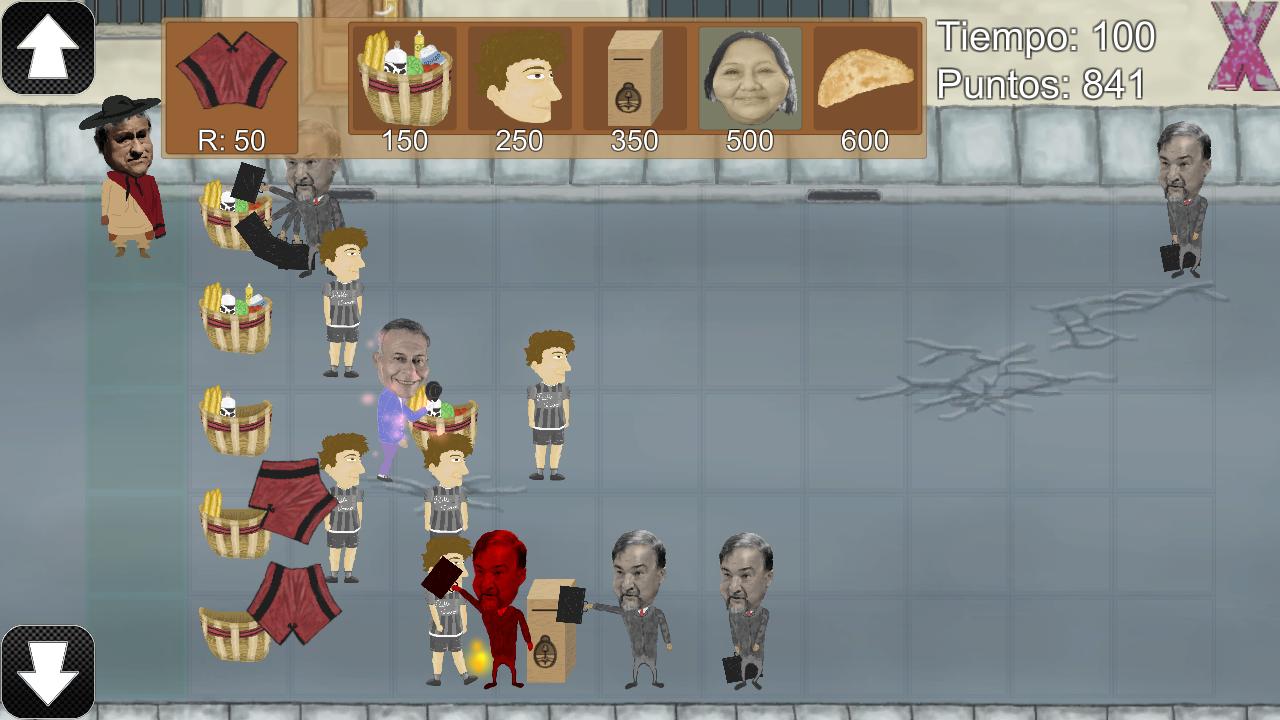 Freddy plays with a salteño candidate for councilor who has to kill the waves coming to the zombie-political. The gameplay is tower defense, you have to build your defense to protect you and drive them all.
