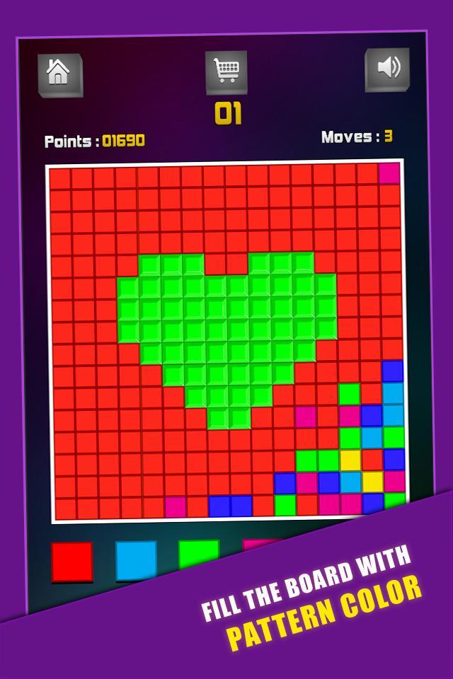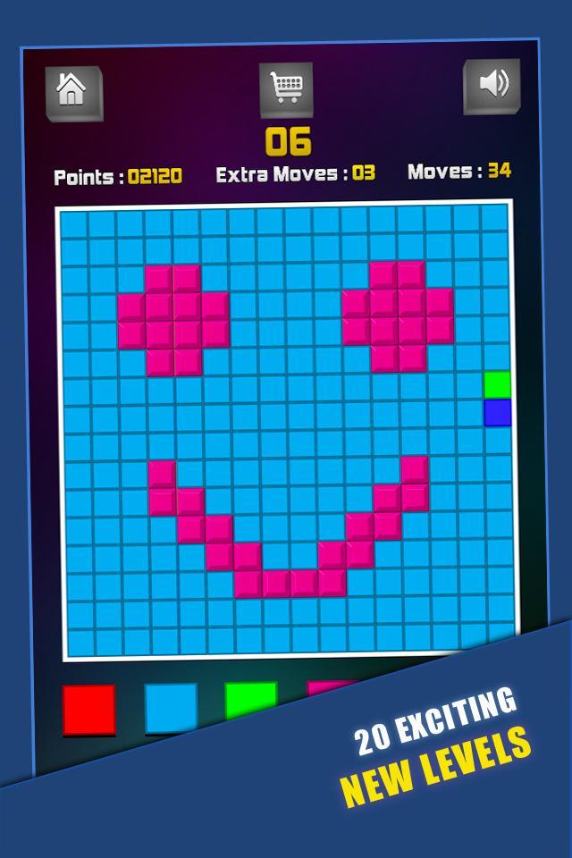 Fill the entire board with a single color to complete the puzzle. You have limited number of moves for each level, but don’t worry if you run of out them. You can get extra moves with your earned points. The size of the board and number of moves will keep reducing as the game progresses.