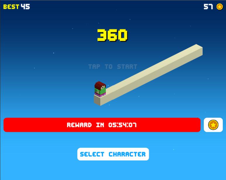 Tap to rotate to reach a high score. Collect coins to unlock new characters.