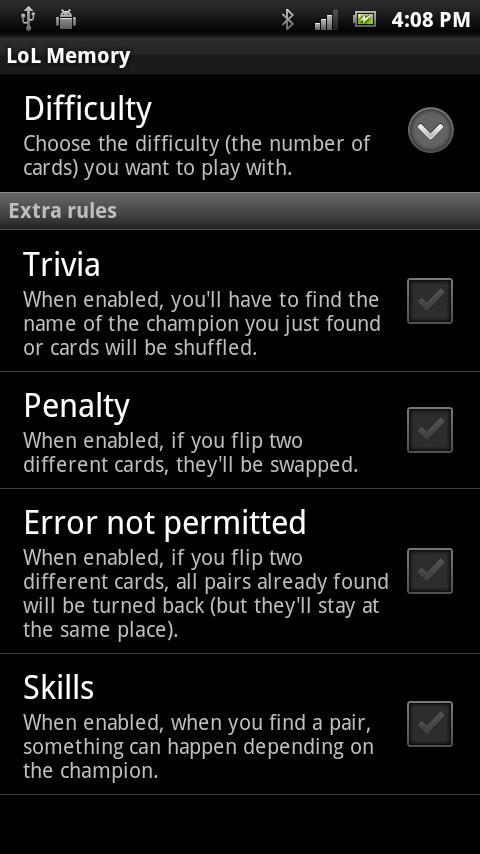 In preferences you can change the level of difficulty or enable some extra rules to make the game funnier/harder.