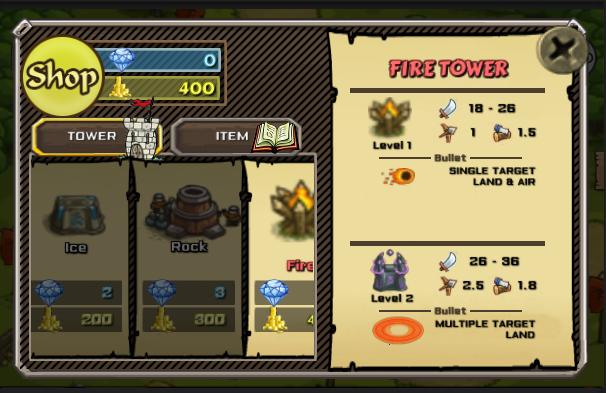 - 4 Type towers (Architect, Ice, Rock, Fire)