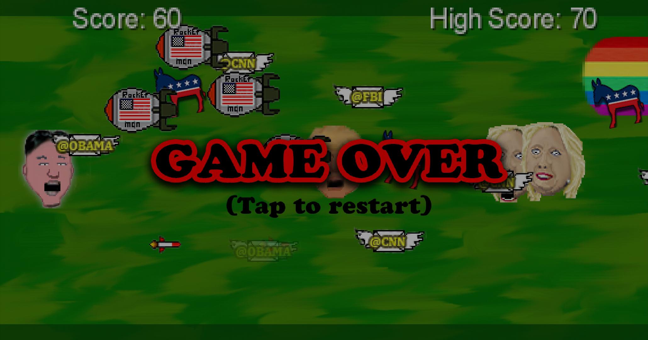 Defend yourself against Donald Trump while he launches his nukes at you. Maneuver around thousands of Hilary Clinton's unwanted emails. Be careful of Bernie Sanders magnificent rainbow because he is shooting Kim Jong Un with his gay pride. None of Kim's rockets can pierce through the rainbow because nothing can kill Bernie's gay pride.