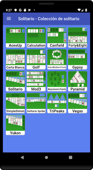 Enjoy a collection of classic solitaire card games, spider, golf among others.