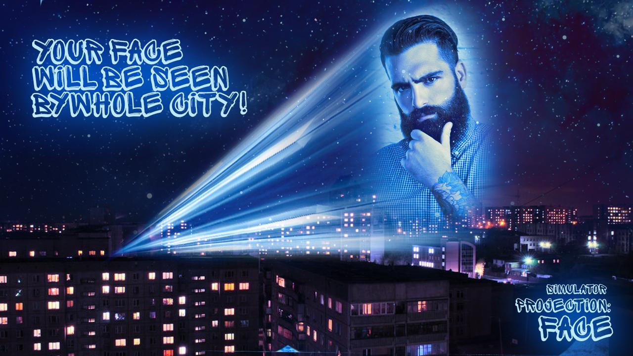 Projection: Face is a simulator of 3D projection, high quality hologram of face projected! Phone camera defines facial picture on the screen, saves the photo, switches on phone’s flashlight and it looks like the picture is being projected! Create imitations of your face projections on city walls, on tables, on mall floors and even on sky clouds!