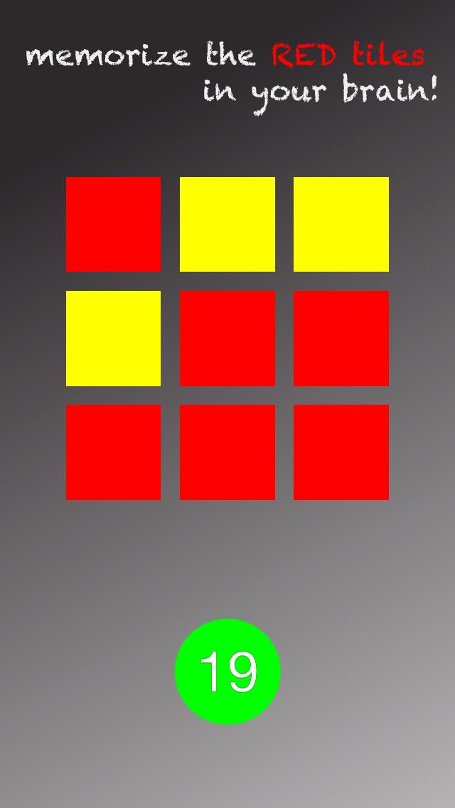 - Remeber the position of RED tiles among whole tiles quickly.